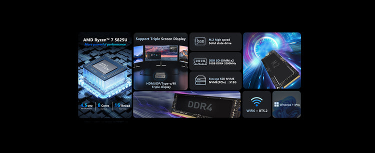 AMD Ryzen™ 7 5825U (8 core 16 lines 4.5GHz L2 4MB L3 16MBAMD)