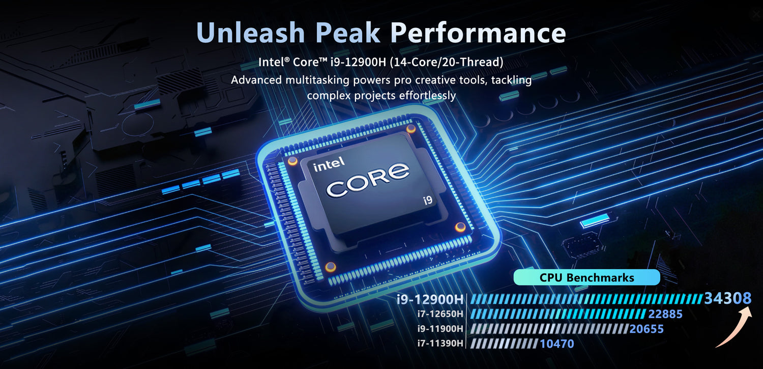 Intel® Core™ i9 12900H (14 core 20 lines up to 5.0GHz )